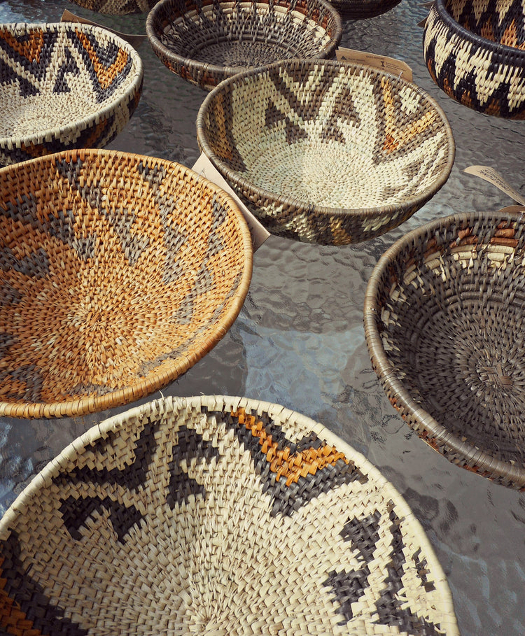 Zulu basket-weaving is a craft that reflects the rich culture and history of the Zulu people. The baskets are made from natural materials that are found in different regions of KwaZulu-Natal, such as ilala palm and ncebe bark. Ilala palm leaves are used to make fine, water-tight baskets that have a cream colour. Ncebe bark is used to make light brown baskets that are not water-tight and are used for storing dry goods. The baskets are also decorated with dyed ilala palm leaves to create colourful patterns and designs.